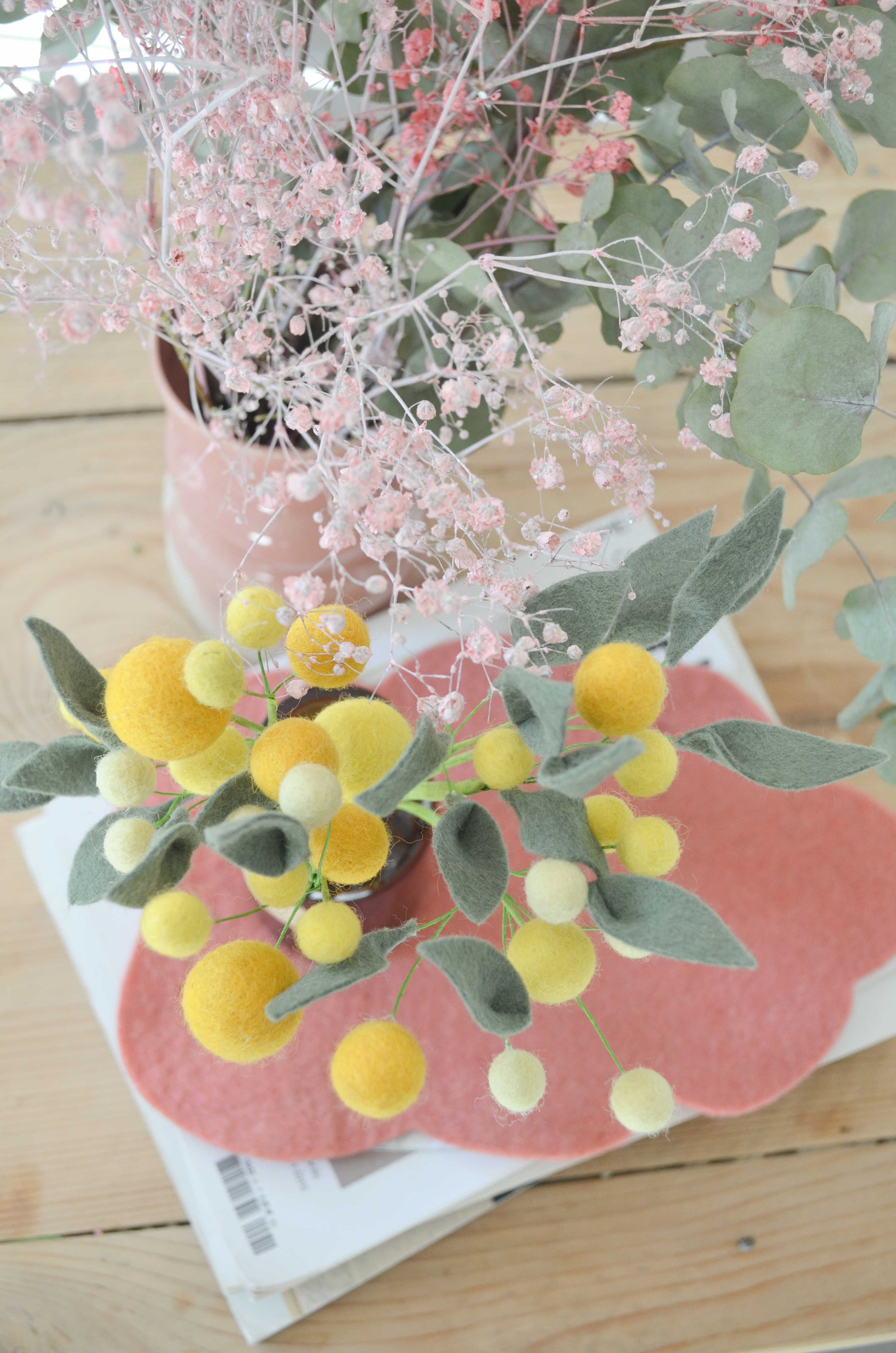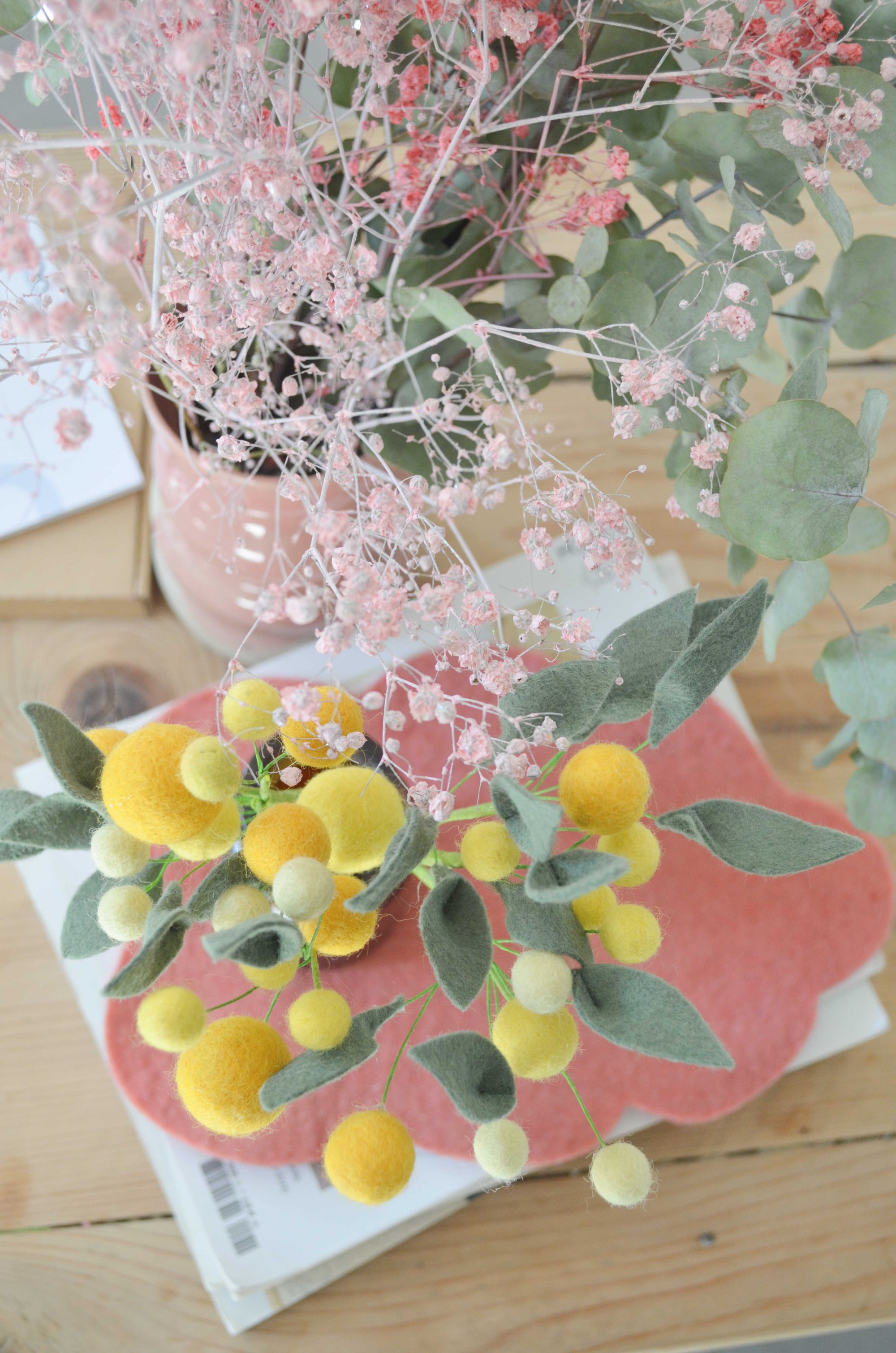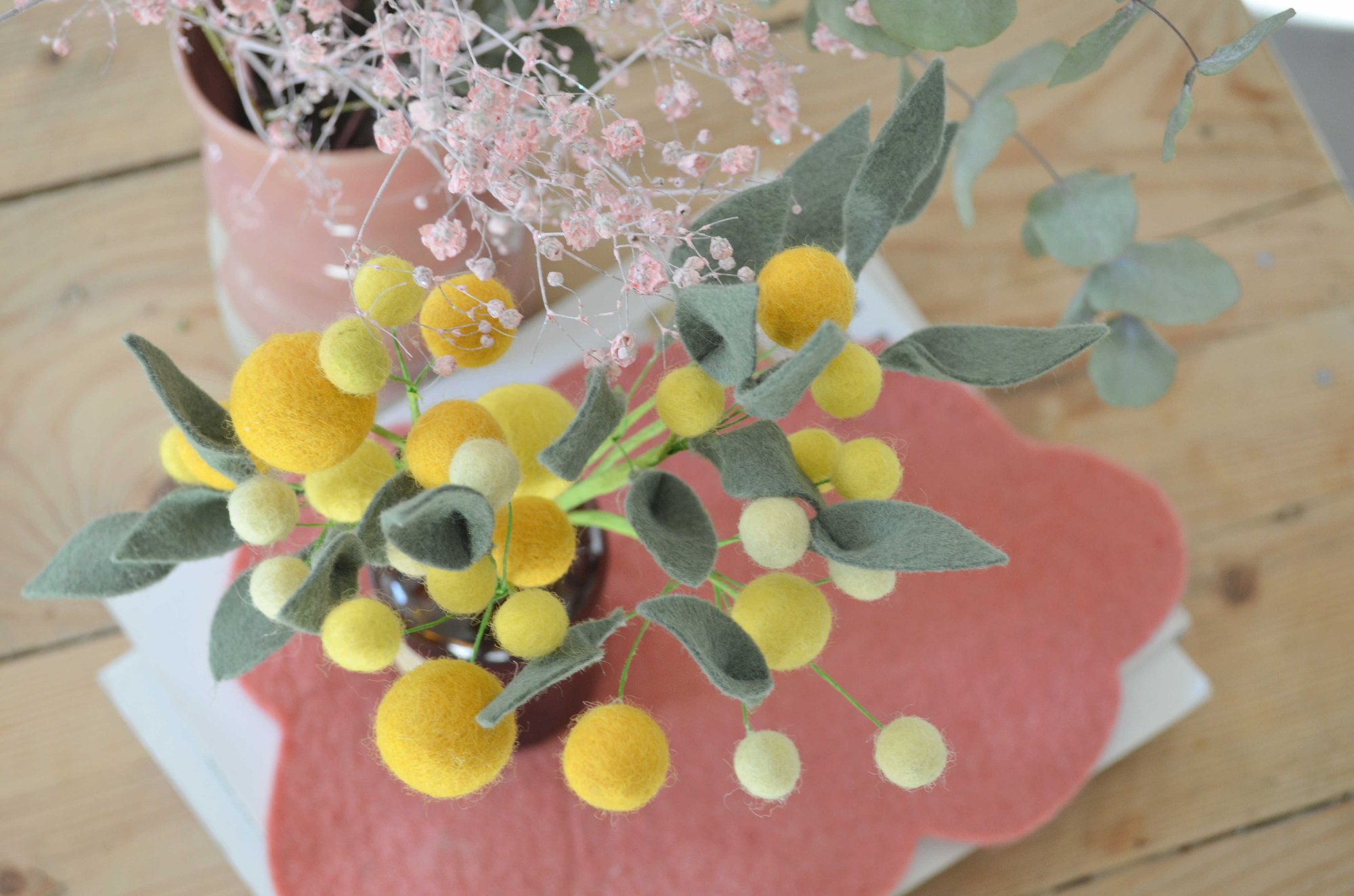 Attention ce bouquet contient de petites boules de feutre il convient de le poser hors de portée des enfants.